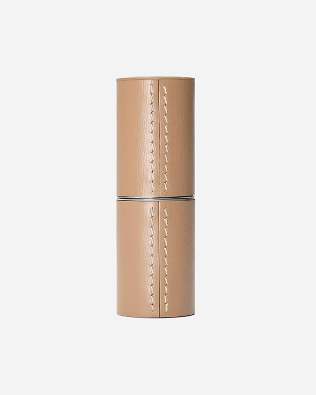 A leather case designed to hold all our stick refills — lipstick, balm, blush, and highlighter. Infinitely refillable, plastic-free, and handcrafted in France.