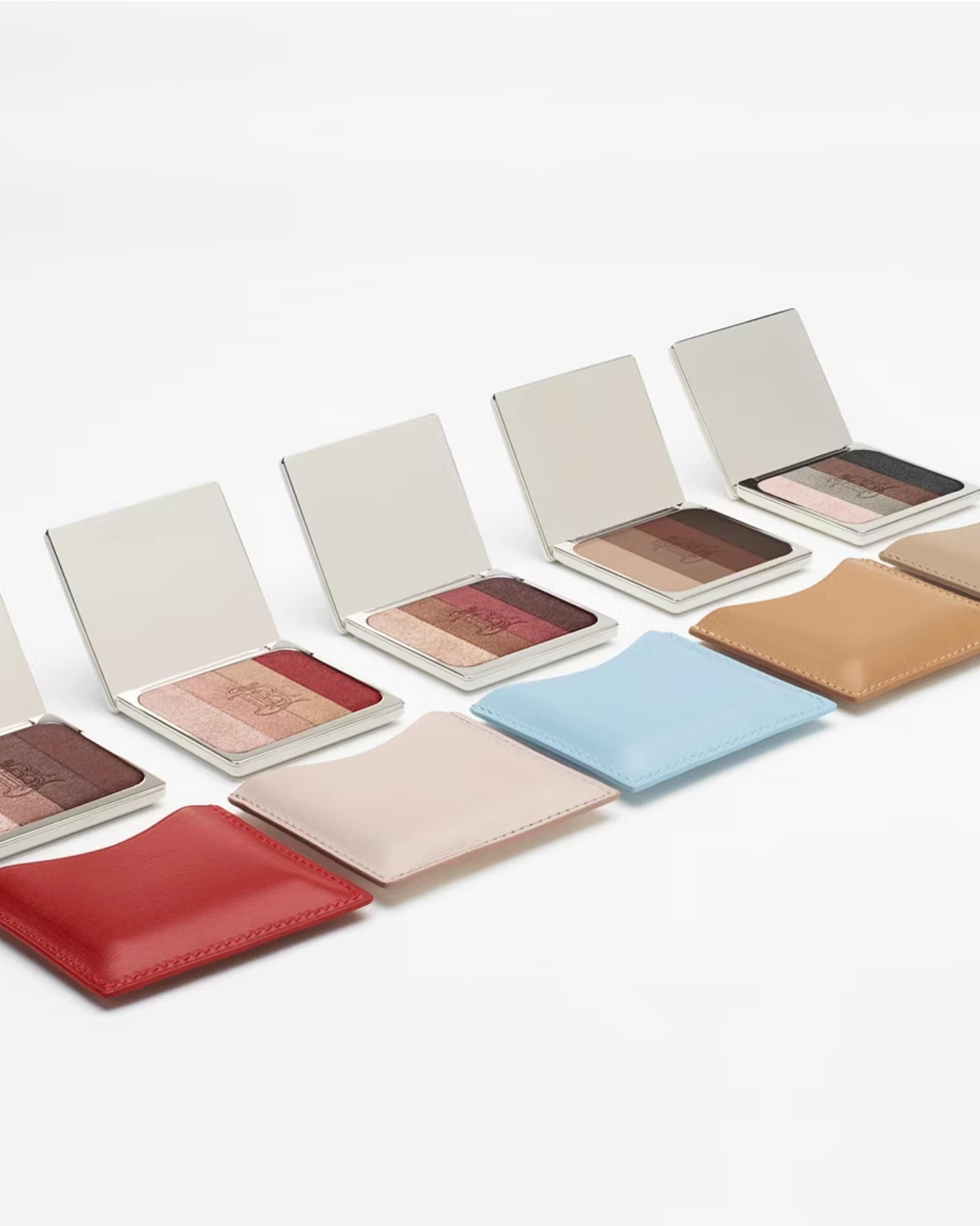 A compact designed to last, made to hold all your powder refills — bronzer, highlighter and eyeshadow. All protected in a leather sleeve crafted to stand the test of time.