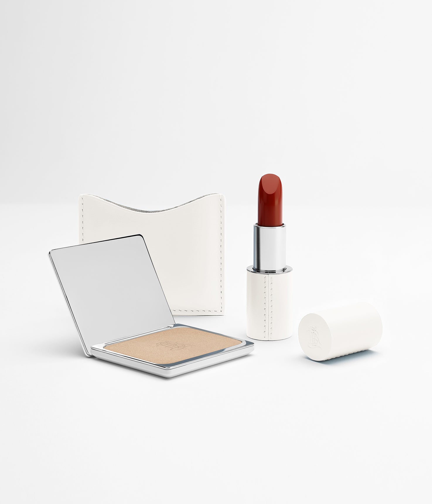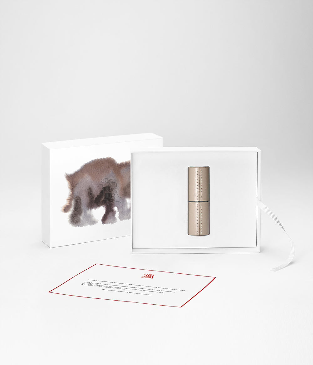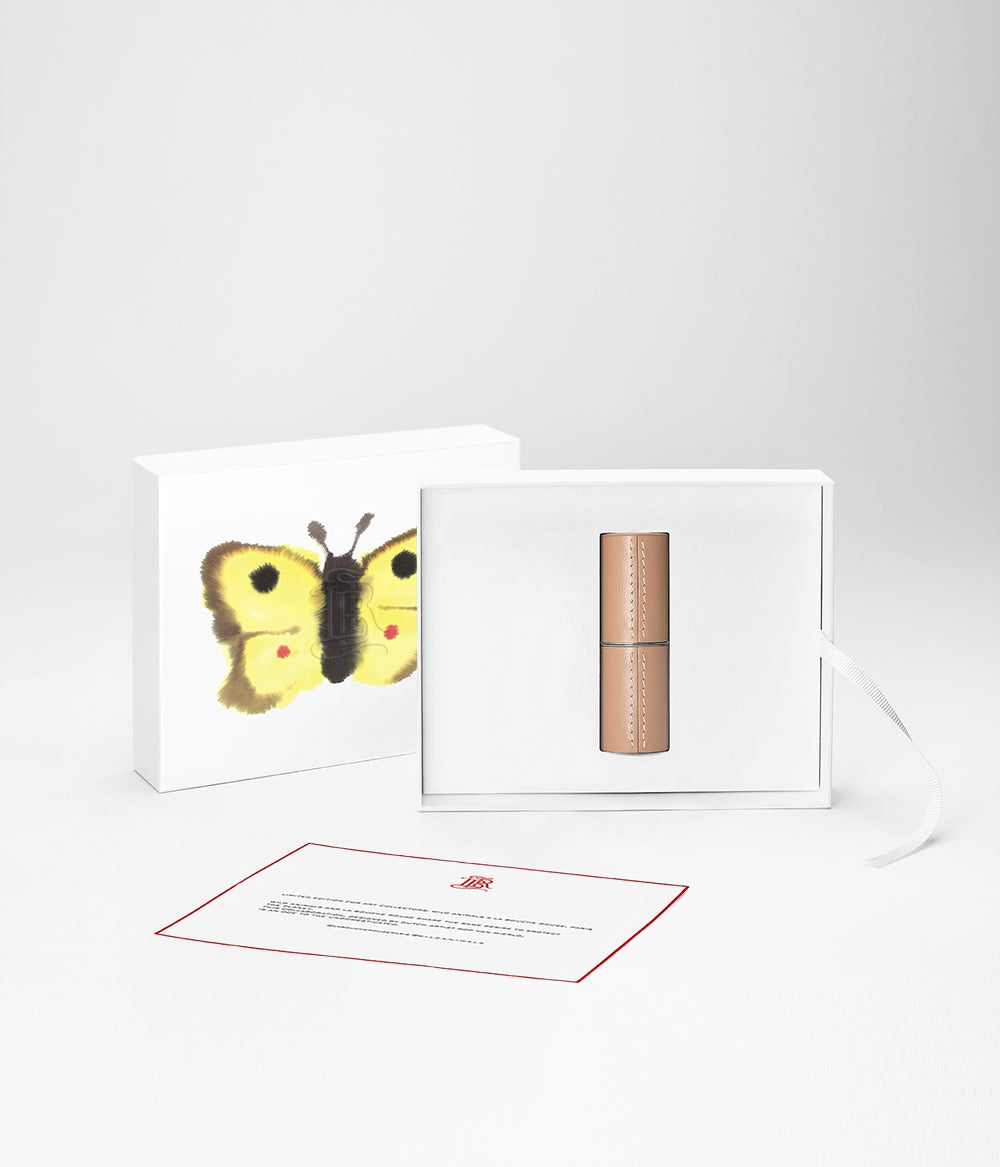 Merging traditional French craftsmanship and a spirit of artistic expression, each set features our fine, upcycled leather lipstick and compact creations in a keepsake box.