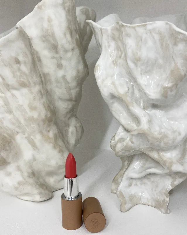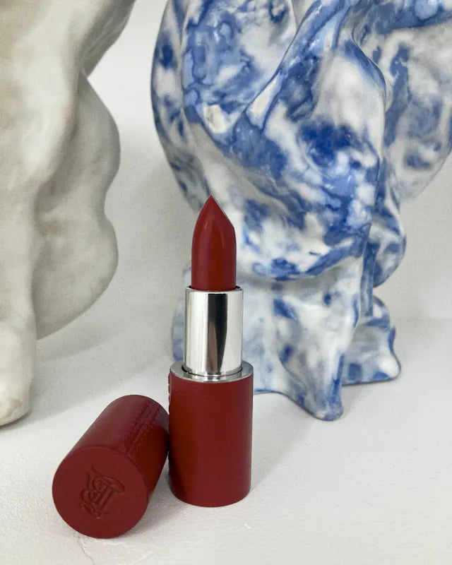Lastly, veil your lips in color with the Rosewood lipstick. Apply it first with the tip of your finger to make the pigment more intense and help create the ideal shape. Perfect the edges using the Lip Brush.