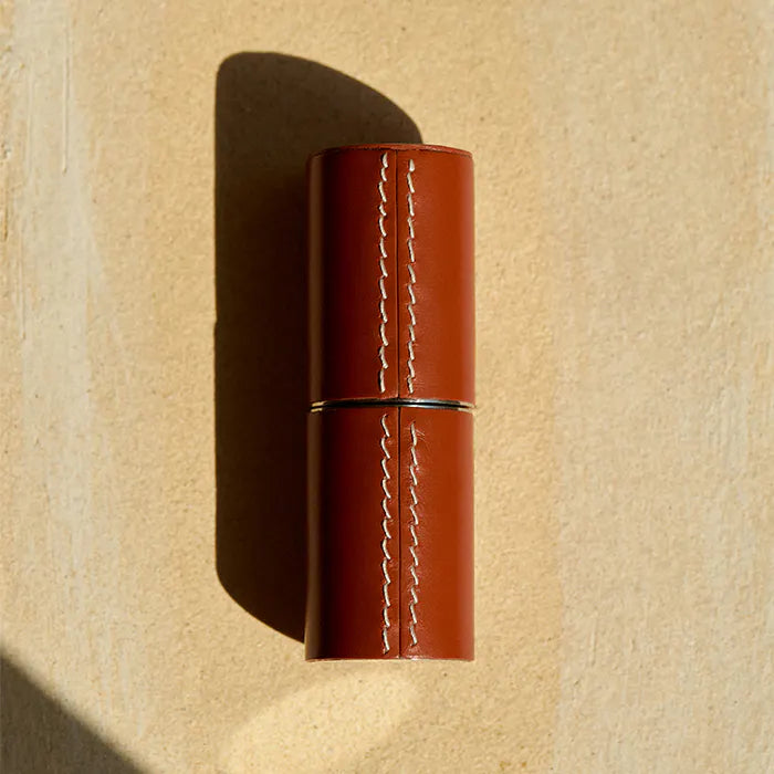 Le rouge à lèvres est présenté dans son écrin en cuir Sienna, un brun-rouge chaud, évocateur d’une terre ensoleillée, destiné à s'embellir avec le temps et accompagné d’une pochette en toile d’Italie.