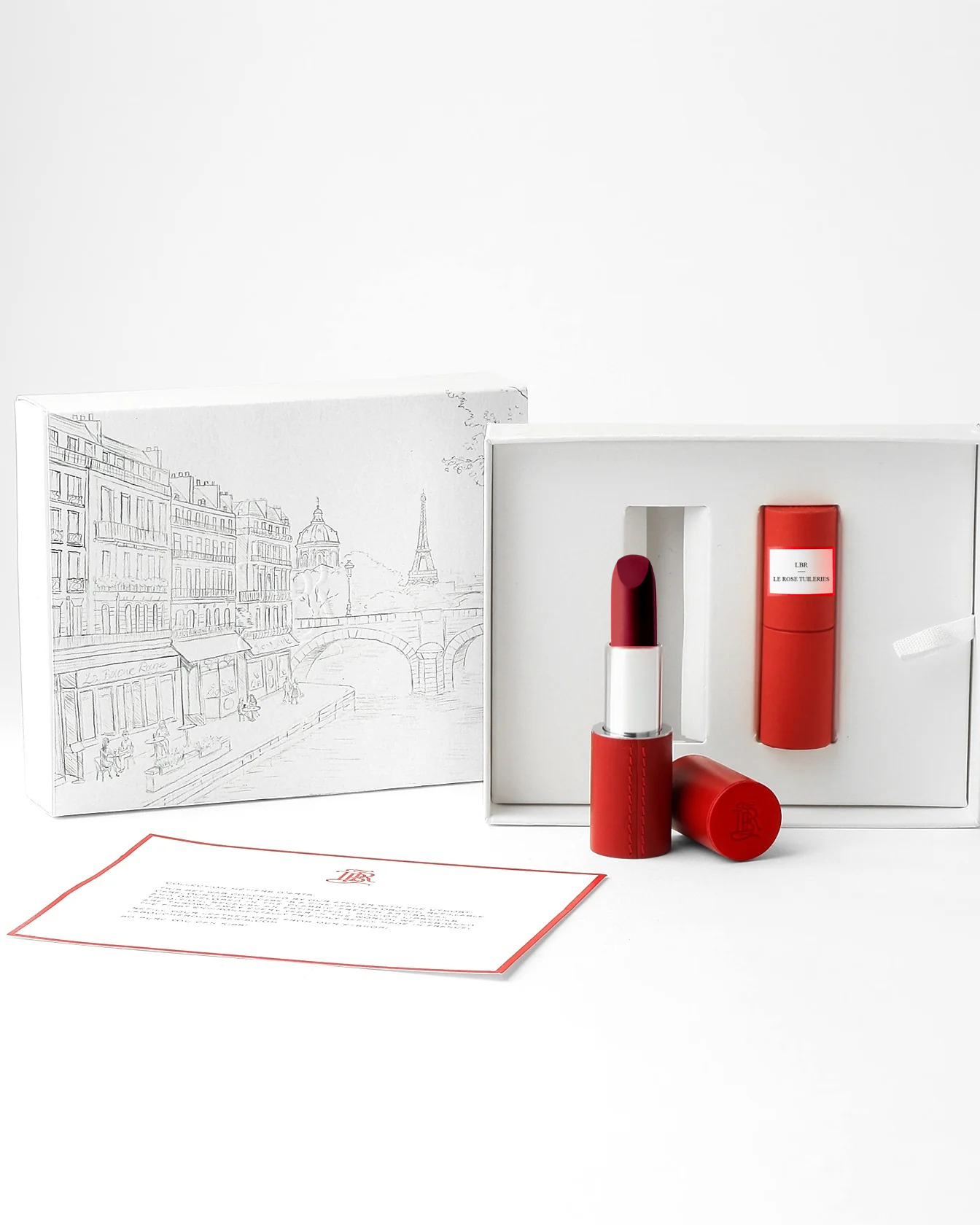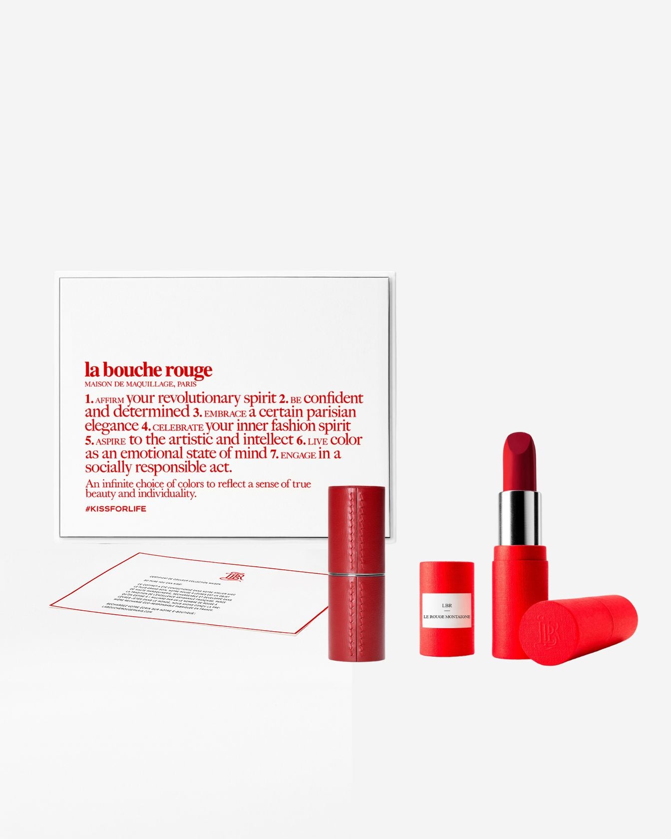 La démarche de la Bouche Rouge s’étend aux packagings et aux emballages. Pas de plastique et pas de matériaux superflus pour limiter le plus possible son impact. Chaque recharge de rouges à lèvres est présentée dans un étui en papier recyclable.