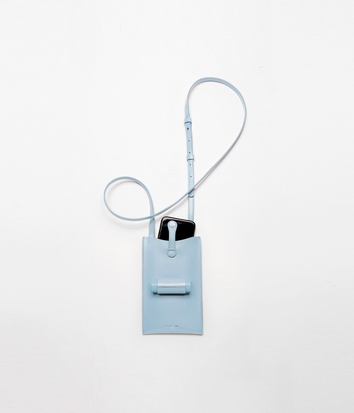 Le sac 21 et son écrin rechargeable Le sac 21 bleu - cuir - développé en France